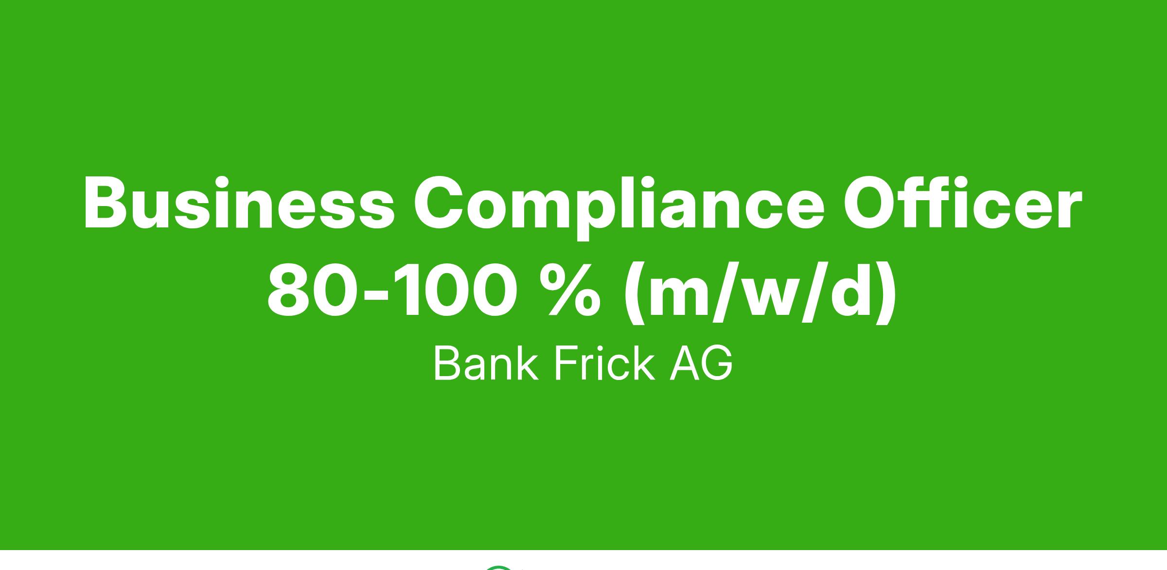 «Business Compliance Officer in einem kleinen Team zwischen Front und Compliance bietet die Aufgaben eines Compliance Officer in enger Zusammenarbeit mit den Kundenberater:innen. Sind sie bereit, das Front Office bei der Einhaltung bestehender und ständig neuer Regulierungen sowie der Umsetzung von Sorgfaltspflichten zu unterstützen? Arbeiten Sie zielorientiert und haben eine «Can-do Attitude»? Dann erhalten Sie im Gegenzug eine spannende und zukunftsorientierte Herausforderung als Business Compliance Officer bei Bank Frick. Werden Sie Teil unseres dynamischen Teams. Ich freue mich, Sie kennenzulernen.»